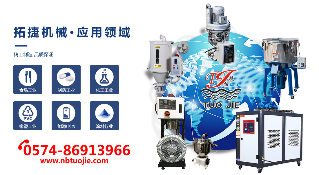 “拓捷”牌塑料干燥机、真空自动上料机、塑料粉碎机、塑料混色机、工业冷水机及模具控...